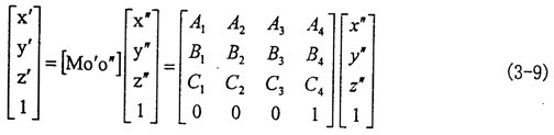 (3-7)式中A1、A2、A3、A4、B1、B2、B3、B4、C1、C2、C3、C4等于其在矩阵[Mo′o″]中对应位置的表达式。