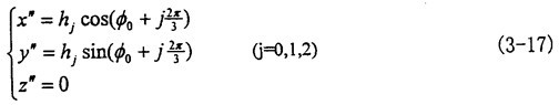 为求出这个参数方程,我们必须解决动坐标系O″X″Y″Z″同定坐标系OXYZ之间的坐标变换矩阵[Moo″]。