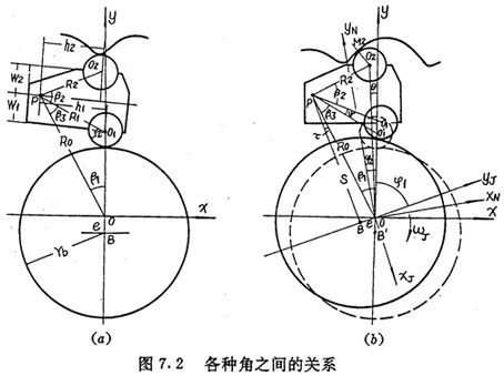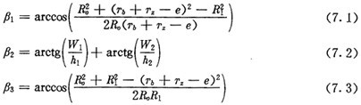上式中h1、h2、W1和W2都是摆动中心与内外滚子中心相对位置的参数,见图7.2(a)。