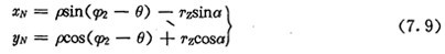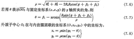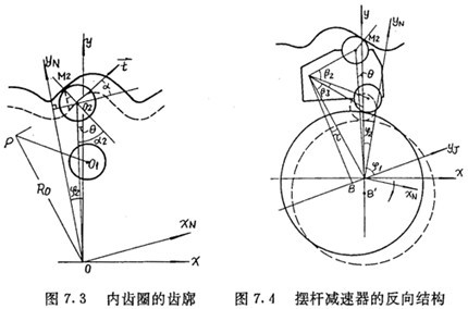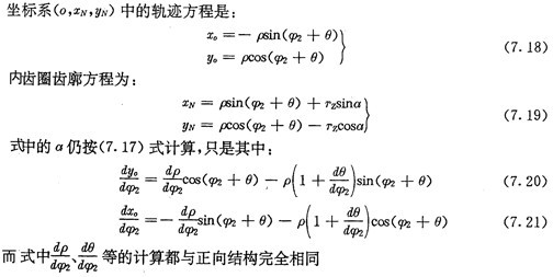 上式中,a为内齿圈齿廓在M2点的法线与yN轴的夹角,它等于外滚子中心轨迹在O2点的切线正向与xN轴正向的夹角(图7.3)