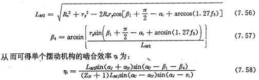在前面讨论的推杆减速器中,推杆的工作区域角及非工作区域角是相等的,在内断圈齿廓既不进行修形又无顶切的理论情况下,工作推杆数为推杆总数的一半。而在摆杆减速器中,摆动机构的工作区域角与非工作区域角并不相等,其工作区,或角由式(7.31)及式(7.24)确定,因而即使在内齿圈齿廓既不进行修形又无顶切,自理论情况下,工作摆动机构数目也不再是摆动机构总数的一半。根据激波器转向的不同,工作摆动机构数目可能会超过总数的一半,也可能会少于总数的一半。