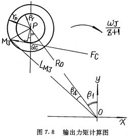 图7.2(a)所示为激波器与摆动机构所处的初始位置,此时摆杆内滚子与偏心圆激波器的短轴端点相切接触。O是激波器的回转中心,P是摆杆的摆动中心,O