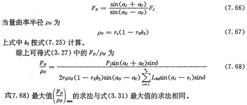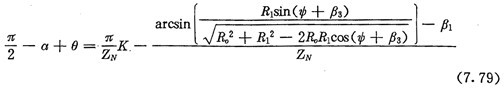 ]之内,只能使整个齿廓曲线的一部分由方程式(7.9)正确表示。为了使齿廓上所有的点都能用方程式(7.9)来正确计算,a的表示式应为: