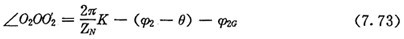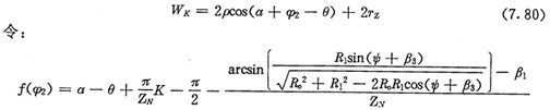 由式(7.71)及式(7.73)可得齿廓AB上与跨槽数为K的齿郭具有公法线的点的条件式为: