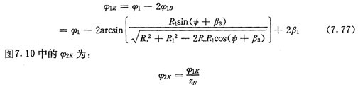 用选代法解方程(7.79),可得到齿廓AB上与跨槽数为K的齿廓A′B′具有公法线的点P所对应的外滚子位置角