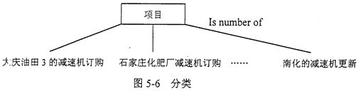1、分类(Classification):定义某一概念作为现实世界中一组对象的类型,这些对象具有某些共同的特性和行为。它抽象了对象值和型之间的“is numberof”的语义。在E-R模型中,实体型就是这种抽象。例如在企业环境里,大庆油田3的减速机的订购是一个企业项目(见图5-6),表示大庆油田3的减速机的订购是企业项目的一个,具有企业项目共同的特性和行为:项目号,项目名,项目开始时间,项目结束时间以及项目费用等。