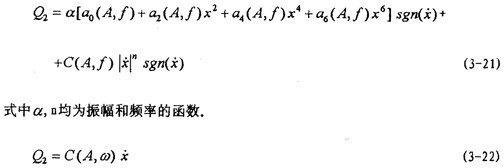 ),代表粘性阻尼力,当n在(0,1)区间变化时,第二项代表的是粘性阻尼力和干摩擦阻尼力的混合阻尼力,系数n决定两种阻尼各占份额多少,定义为粘摩阻尼分配系数。式中a0,a2,a4,a6,C,n和a均是振幅的函数。