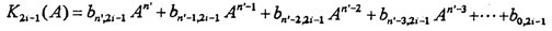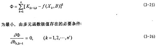 已知K2i-1 (A)是关于自变量X=[A,A2,…An1]T和待定参数B=[ b0,2i-1,b1,2i-1,…,bn′,2i-1]T的形式已知的函数(3-13),简写成: