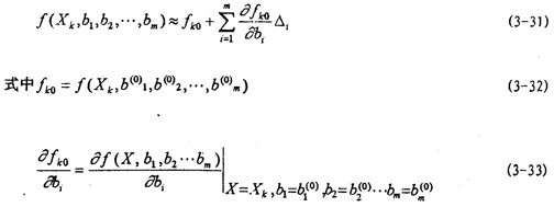 得一组线性方程组,在n>k的情况下,联立求解这一线性方程组即可求得唯一的一组B值。根据此法求得(3-13)式中参数值并代回可得: