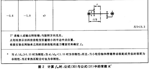 实际应用中当齿轮的结构刚度使得fsh, 可以忽略,或当螺旋线修形使齿宽中部的变形得到补偿时,可按下列计算: