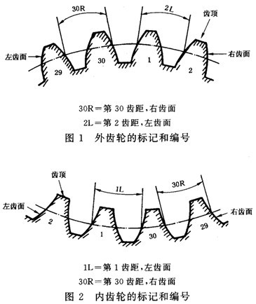 关于b)种情况,涉及两个产品齿轮所产生的偏差(F′和f′),称为“齿轮副的传动偏差”。为了完全确定完整的偏差谱图,必须继续旋转,直至两个产品齿轮的旋转数分别等于另一相配齿轮齿数被齿轮副两个齿数的最大公因数除所得的数,用这种方法确定的旋转数符合齿轮副的完整啮合周期。形成的偏差曲线图反映出齿轮副中两个齿轮的轮齿要素的各分量,如果要检测出单个齿轮的轮齿偏差,必须对数据作适当的处理(见9.3.3.2)。