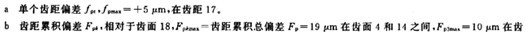 图25中注明了切向综合总偏差Fi′,最大一齿切向综合偏差fi′以及齿廓分量“a”和单个齿距成分“b”。