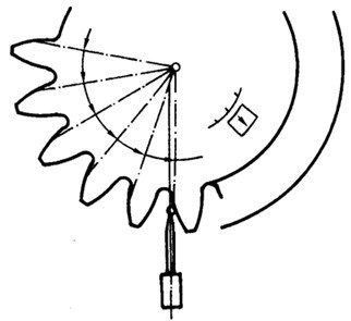 由于原因b)所造成的波度,其波数(投影到端面上计数)等于主分度蜗轮的齿数ZM。这可能造成在噪声谱中那部分刺耳的单纯音,其频率相当于被测齿轮的旋转速度(转数)乘以ZM。