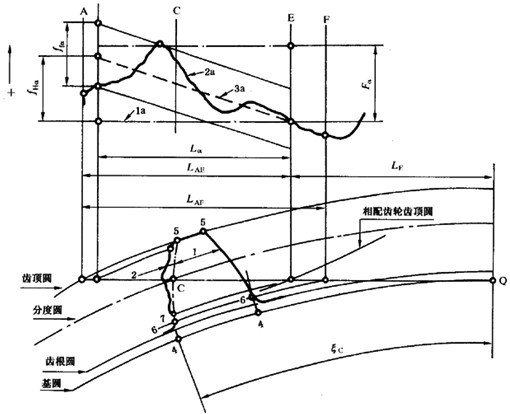 如果在这种情况下,啮合相对的两端点的齿廓偏差也不相同,则切向综合偏差图上的齿廓(一齿综合)成分也将受到影响。