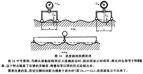 在检测原因a)或b)造成的波度曲线时,计算出相关的波长,把附件的球形定位脚放在奇数个波长的间距上,随后使定位脚沿螺旋线滑动,波度的数值由位于定位脚中间的测头显示出来。
