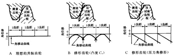 为进行切向综合偏差的检测,两个齿轮其中一个可以是测量齿轮,以适当的中心距相啮合并旋转,在只有一组同侧齿面相接触的情况下使之旋转直到获得一整圈的偏差曲线图。