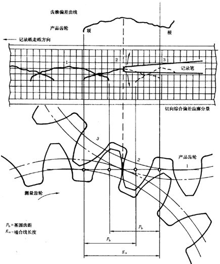 必须记信:记录下来的切向综合偏差线图并不仅反映检验少数几数几个齿的齿廓偏差的影响,而且受到产品齿轮轮齿工作齿面上任何凸出物接触的影响。