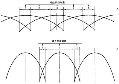 图30所示线图中,情况“A”为斜齿轮而“B”则为直齿轮,显示出两种情况下重叠齿影响的差别。