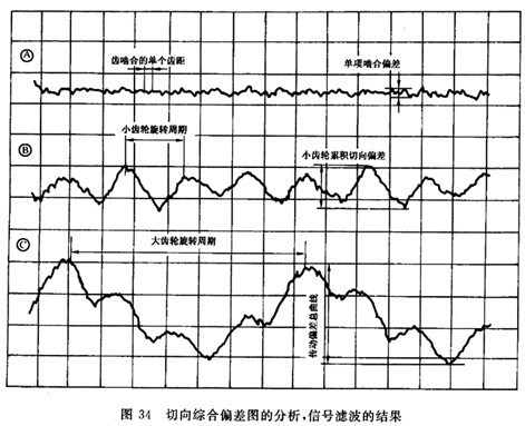 图34C表示切向综合偏差的全输出信号,经仔细选择的高通、低通和带通等滤波处理后,信号的各成分可以分开。
