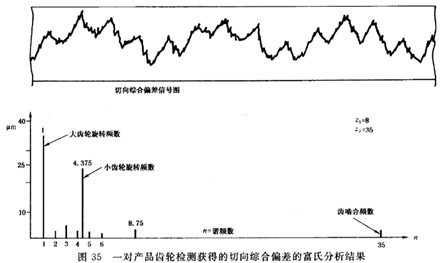 图35中的线图表示一幅完整的切向综合偏差线图,以及FFT分析所得的结果。
