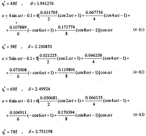 在以上工作的基础上,便可根据系统周期解的一次表达式(4-38),得各种情况下的解析解: