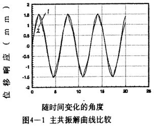 曲线图如图4-1所示。从图中可以看到解析解曲线1和数字仿真解曲线2重合性较好,在振幅与相位上误差都较小。