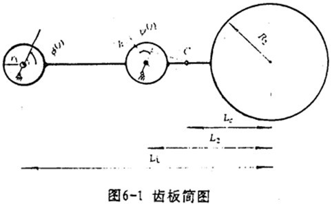 齿板简图如图6-1所示。以齿板支承轴孔与偏心套的接触点为参考点,则齿板质心的位移为