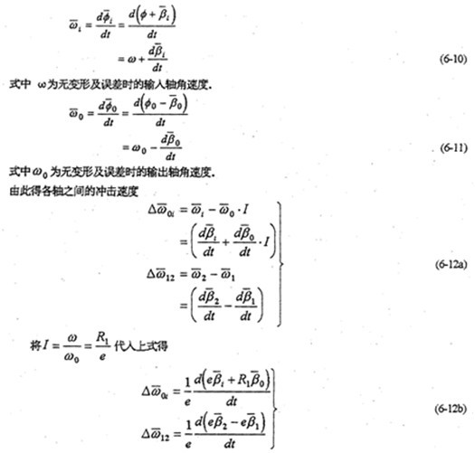由于减速器机构的变形及各构件的误差,使各传动轴的角速度及角加速度不再满足条件式(6-8)及式(6-9),亦在运转过程中各轴之间存在角速度及角加速度的冲击现象。该冲击将直接导致系统振动,使输出速度产生波动、降低其输出的稳定性,并产生冲击载荷。