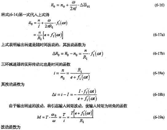 轴间的冲击将引起输出的转速波动,并使三环减速器的传动比不再为恒定值。若输入轴的转速为n,则输出轴的转速可表示为