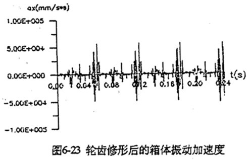 修形,使三相载荷均衡化。图6-23是将死点位置轮齿修形后,轴承座的振动加速度图。与图6-21(a)比较,总体幅值明显下降。