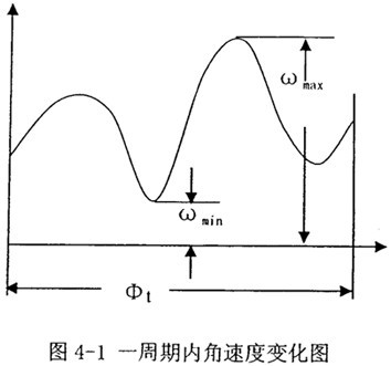 如图4-l所示为在一个周期内等效构件角速度的变化曲线,其平均角速度田。在工程实际当中,常用其算术平均值来表示,即ω