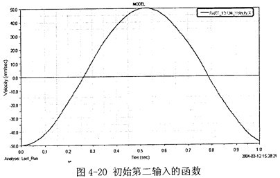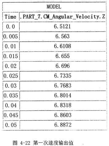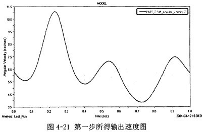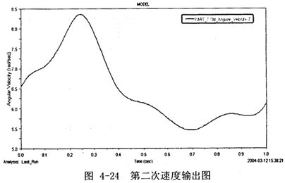 (2)在adams下建立的样机模型里,将上述速度值设置到第二输入中,设置好后,进行仿真。得到输出速度图4-21。
