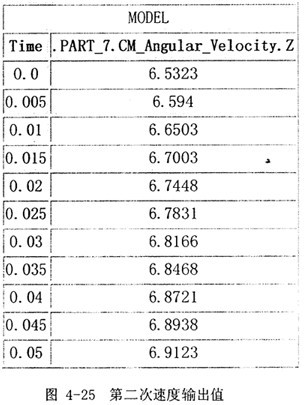 (3)同样,将上述输出速度图每隔0.005秒采样一次,得到一组输出速度值的离散数据,以数据文件格式输出,如图4-25所示(截取0.05秒内)。
