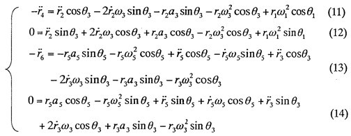 同样,两边再对时间求导,整理,可得出加速度分析式: