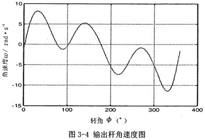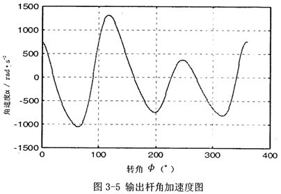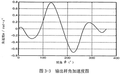 首先由图3-2可以看到,若机构结构参数设计恰当,并且调整中间滑块3偏移到合适的位置时,可在一定范围内,产生一个反向的速度波适度抵消原速度波动。再由图3-3可知,在未加入第二自由度时,加速度变化值不大,说明阻力矩和电机主动力矩不会受到大的影响,不致导致原机械系统的各项参数发生大的变化。