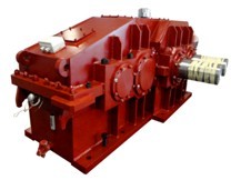 XSK660/550是为开放式炼胶机(简称开炼机)配套的主齿轮箱,是高精度重载荷硬齿面齿轮齿轮箱。该主齿轮箱采用平行圆柱齿轮减速的传动形式。输入轴通过弹性联轴器与电机轴相联,由电机驱动,经过齿轮减速和两输出轴之间齿轮的减速与功率分流,两输出轴分别通过联轴器把动力传递给开炼机转子轴,带动开炼机转子进行炼胶。