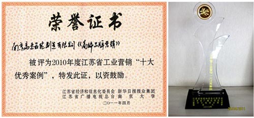 为贯彻落实省委十一届十次全会精神,加快推进“转型升级工程”和“科技创新工程”,4月26日,江苏省工业营销创新大会暨2010十大优秀案例/风云人物颁奖典礼在苏州国际博览中心隆重举行,南京高精传动设备制造集团有限公司(简称:南高齿)下属子公司--南京高速齿轮制造有限公司荣获2010江苏省工业营销十大优秀案例奖项。