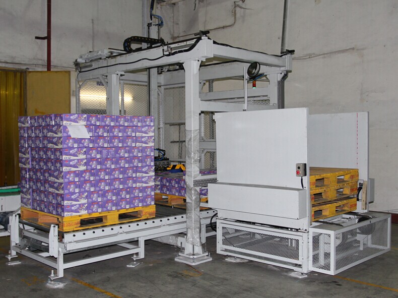 4.托盘实现自动供给,码垛完成后自动输送下线;其结构简洁,实现检修方便和高产能的特点;