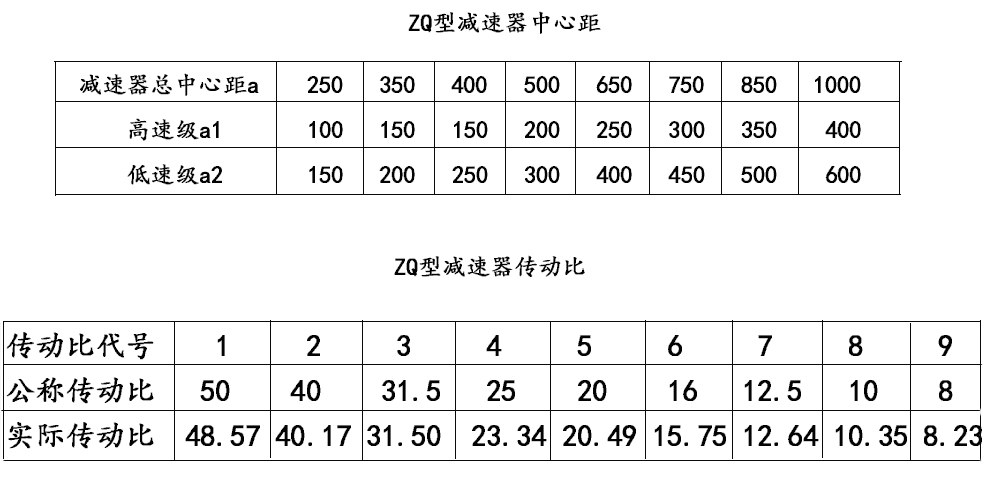 ZQ齿轮减速机传动比:48.57、40.17、31.5、23.34、20.49、15.75、12.64、10.35、8.23。