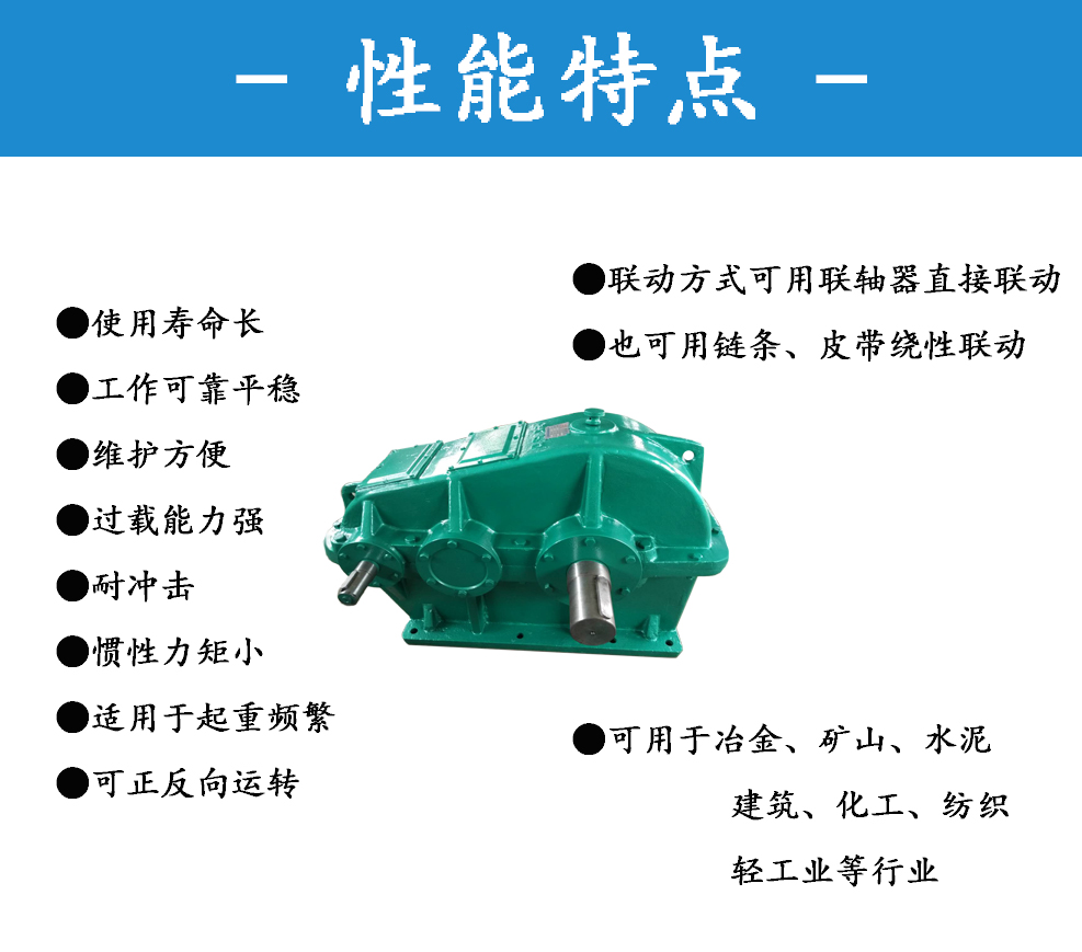 该系列齿轮减速机使用寿命长,工作可靠,维护方便。本机还具有过载能力强,耐冲击、惯性力矩小,适用于起重频繁和正、反向运转的特点。其联动方式可用联轴器直接联动,也可用链条、皮带挠性联动主要用于冶金、矿山、水泥、建筑、化工、纺织、轻工业等行业。