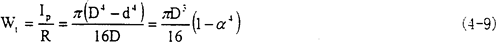 ,导出的公式中引进了截面极惯性矩和抗扭截面系数,在空心轴的情况下有