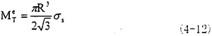 (2)当圆轴整个截面都进入塑性状态,如图4.4(c),此时的扭矩就是圆轴的塑性极限