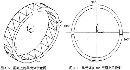 在像胶右端面圆环上取单元体,且在分析过程中时取关键的四个象限点的位置作为研究对象,分别为90°,180°,270°,360°位置为研究对象。后面的径向不对中、角向不对中以及综合不对中也采用相同的4个位置进行分析。
