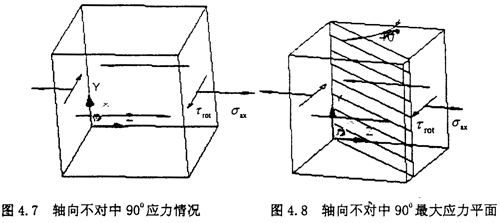 (1)轴向不对中90°位置:当圆环上的单元体旋转到最上方时,也就是90°位置时,单元体的应力如下图所示。