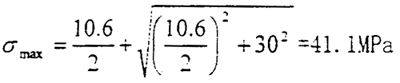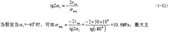 此时主平面上的正应力平面的角度有这种关系:tg2α4=-∞,所以有α4=-45°或-135°,此时的最大应力值为σmax=30MPa