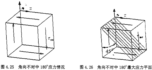 此时的受力图中可以看出,附加的拉应力已经减小为零,实际上单元体受力其实属于纯剪切状态,