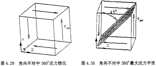通过角向不对中的分析可以知道,具有角向不对中的联轴器受力情况仍然属于两向应力状态,即只有拉扭结合与纯剪切的情况发,没有三向应力状态,比较四个位置的最大主应力