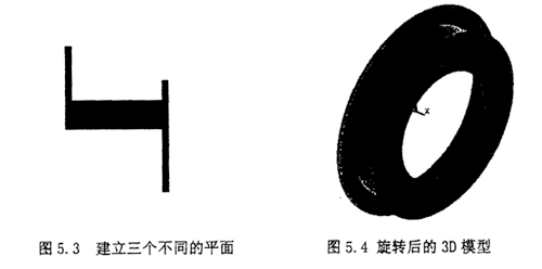 通过旋转面绕X轴旋转生成3D模型,生成体模型后切换视图方向,可用从不同的角度观察图形,命令为“PlotCtrls>Pan Zoom Rotate”结果如5.4所示。