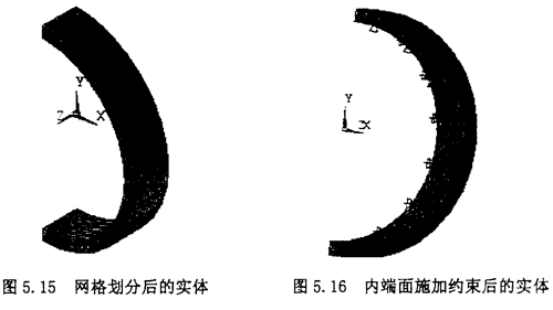 采用影射网格生成单元,Mesh Tool下设置面上网格尺寸的大小,橡胶圆环内外端面的尺寸设为30,两个截面尺寸设为5。在“Mesh”工具条下“Shape”下选择“Hex”“Mapped”,单击“Mesh”,在图形屏幕上选择实体。单击“OK”,生成的网格单元如图5.15所示