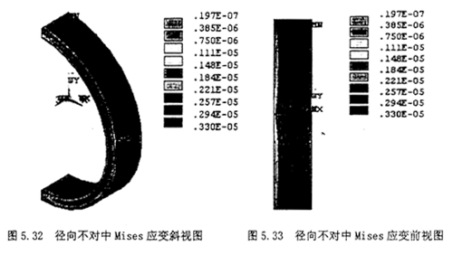 从Mises应力云图中可以看出,最大应力出现在900位置。在外橡胶圆环外圈的应力比内圈的应力要大。